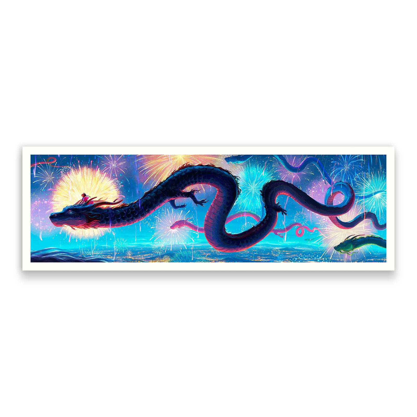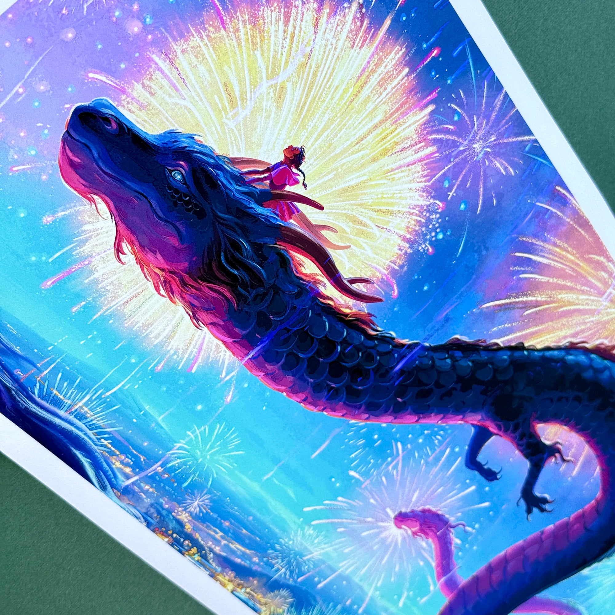 This art print of 'Fireworks Racer' by Devin Elle Kurtz is available in your choice of two sizes, printed on 100% cotton 190gsm natural paper and part of the Holiday Prints Collection available to order now for a limited time only.
